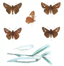 - ↑ W. H., Evans (1949). A Catalogue of the Hesperiidae from Europe, Asia, and Australia in the British Museum. London: British Museum (Natural History). Department of Entomology. pp. 448–449.