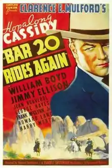 Bar 20 Rides Again is a 1935 American Western film directed by Howard Bretherton and written by Gerald Geraghty and Doris Schroeder. The film stars William Boyd, James Ellison, Jean Rouverol, George "Gabby" Hayes, Harry Worth, Frank McGlynn Jr. and Howard Lang. The film was released on December 6, 1935, by Paramount Pictures.[1][2]
