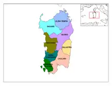 Today, Barbera Sarda is found almost exclusively on the island of Sardinia where it is a recommended grape variety for wine production in the provinces of Cagliari, Nuoro, Oristano and Sassari. While the grape can be made as a varietal, it is most often used in blends where the grapes naturally high acidity can add balance to the wines.[1]