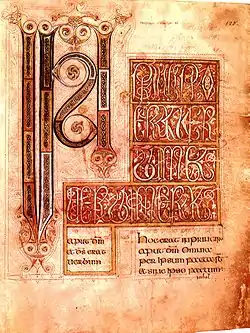 The Barberini Gospels is an illuminated Hiberno-Saxon manuscript Gospel Book (Rome, Vatican City, Biblioteca Apostolica, Barberini Lat. 570, also known as the Wigbald Gospels), assumed to be of a late 8th-century origin.[1]