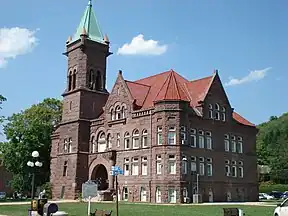 The Barbour County Courthouse in Philippi, Barbour County, West Virginia, USA is a monumental public building constructed between 1903 and 1905 in the Richardsonian Romanesque style. It dominates the town center and is the county's chief symbol of government. It was added to the National Register of Historic Places in 1980.