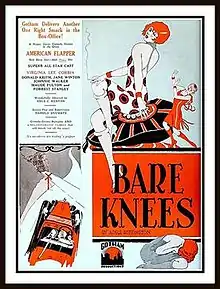 Bare Knees is a 1928 American silent film comedy drama directed by Erle C. Kenton and starring Virginia Lee Corbin as Billie Durey, the family's black sheep, who returns to her small hometown causing a sensation with her short skirts, cigarettes and other "flapper" accoutrements.[1][2]