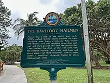 A Florida state history marker, located at Boca Raton on the grounds of the Spanish River State Park, honors barefoot mailmen.