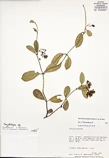 | Photograph of an herbarium specimen of Baroniella camptocarpoides[1] | |