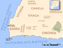 Barra is a neighborhood located in the south zone of the city of Salvador, Bahia, Brazil. Barra is one of the most traditional neighborhoods of the city, and is also one of the most popular neighborhoods for tourists, with many attractions, like Farol da Barra Lighthouse, Morro do Cristo Hill, Farol da Barra Beach, and Porto da Barra Beach.[1]