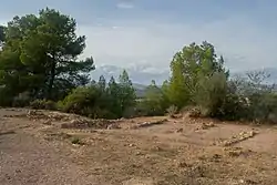 The site was first occupied during the Late Bronze Age, when cottages were established. During the First Iron Age, relatively complex rectangular and trapezoid buildings were planned, with the creation of at least 17 households and 3 streets. The structures were built with stone baseboards and adobe walls.[1] Some of these buildings correspond to private households, since a fireplace has been found in each one of the structures, except one which has been identified as a common building devoted to agricultural activities, due to the presence of stone mills. A water basin was carved in the natural rock, possibly for animal maintenance. The economy of the settlers was based on agriculture (grapevine, acorn) and livestock and relied in subsistence,[2] but eventually succeed in the creation of surplus, thus leading to a more complex society. Contact with Phoenician traders took place, since the presence of Phoenician amphorae has been recorded on the site. The site suffered a devastating fire that interrupted any kind of human activity around 550 BC, coinciding with the beginning of the Second Iron Age.[1]