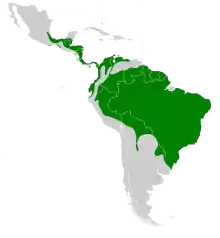 The subspecies of the barred forest falcon are found thus:[3][4][8]