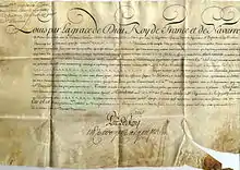 In 1342 the Barrême community was attached to the viguerie of Castellane by Robert, King of Naples, the Count of Provence. The death of Queen Joanna I created a crisis of succession for the County of Provence with the towns of the Union of Aix (1382-1387) supporting Charles, Duke of Durazzo, against Louis I of Anjou. Aix submitted in October 1387 which precipitated the rallying of the Carlists under the lord of Barrême, Géraud de Villeneuve. While he had supported Charles de Duras for several years, he joined with his two brothers: the Lords of Gourdon and Roquebrune from Anjou and obtained a "chapter of peace" from Marie de Châtillon on 2 January 1388 and paid homage to Louis II of Naples aged ten.[15] The village community had also supported Charles de Duras and also submitted in 1386.[15]
