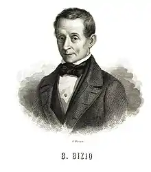 Bizio was the son of tailor Giovanni Bizio and Paolina née Zampieroni born in Costozza di Longare, Venice who grew up in Padua working as a tailor. He was educated in Padua and around 1809 he worked at the Zanichelli pharmacy. He suffered from eye strain and later became a physics teacher after meeting Abbot Cicuto. He then trained at the University to become a pharmacist in 1820. Around 1819 he examined the phenomenon of "bloody polenta", initially claimed to be a miracle, and examined the cause of the red spots on corn meal and other starchy foods. He identified the cause as being an organism. He identified that the seeds of the microscopic organism were present in the air by showing that spots appeared on a piece of polenta kept in a warm and moist place. He ruled out through experiment the possibility that he may have inoculated the spores through his hands. He noted that the red pigment quickly faded and so gave it the species name marcescens meaning "to decay" in Latin. Bizio published his results in the local Gazzetta privilegiata[1] and also wrote about his studies to Angelo Bellani.[2]