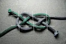 The basket weave knots are a family of bend and lanyard knots with a regular pattern of over–one, under–one. All of these knots are rectangular and lie in a plane.[1] They are named after plait-woven baskets, which have a similar appearance.