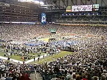 It was announced on April 15, 2008 that Ford Field would host "BasketBowl II" between the Spartans and North Carolina as part of the ACC–Big Ten Challenge on December 3 of that year. North Carolina won the game easily 98–63.[6] The game was televised on ESPN.[7] The two teams met again in Ford Field four months later, this time for the 2009 NCAA Tournament Championship.[8] North Carolina easily defeated the Spartans in the championship as well.[9]