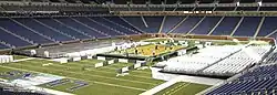 The basketball court for the game was moved from Michigan State's Breslin Center and reassembled on the 50 yard line of Ford Field, giving the promotional title "Basketbowl: Hoops on the 50!" This is the same court that Michigan State won the 2000 NCAA Championship on in Indianapolis. In addition, the entire court was raised off the field by a custom stage deck installed by SGA Production Staging, Inc. to improve sight lines for those sitting in the upper bowl of the stadium.