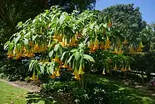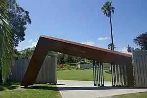 The gardens are divided into several areas: the Conifer Arboretum, Dress Circle, Millennium Hill, Native Bush and Wetlands, Lakeside Flats and the Woodlands area.[10] Flora includes camellias, daffodils, magnolias, Norfolk Island Pine, and roses. A Mediterranean garden includes Aeonium, Aloe, Agave, Euphorbia and Echium. The subtropical section of the garden includes the aloes and phoenix palms. The conservatories contain tropical plants, begonias and orchids of national importance.[8][9] A section of the gardens includes maturing revegetation while a bank contains native Hebes.[5]