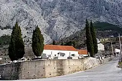 Bast is a village in the Baška Voda municipality in southern Croatia, located at the southern end of the Sveti Ilija tunnel. In 2011 it had a population of 126.[3] The village has declined in population since the 1950s, where it peaked at around 450 inhabitants. The traditional livelihood of the village was agriculture and the local quarry but since the turn of the 21st century there has been a shift to tourism, with the renting out of apartments and rooms driving the local economy.