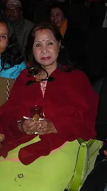 Basundhara Bhusal is a Nepalese movie and theater actor. She was one of the actresses in the first Nepali movie Aama (1964).[1] Since then, she has acted in at least 135 feature films and 60 TV programs.[2] She started her career in theater, acting in plays at the Rastriya Nachghar[3] since the 1960s.[4]