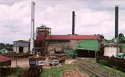 In Cuba and the Dominican Republic, the basic conglomerate unit of a sugar production is usually called an ingenio. An ingenio consists of a central administrative office, a sugar cane mill, a sugar refinery, the town around the office and refinery, sugar fields (campos de caña), and miscellaneous production equipment like trucks, trains, tractors, weighing scales, and housing for workers, usually in what is called a batey.