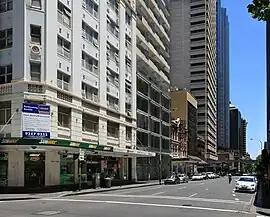 Bathurst Street is a street in the Sydney central business district in New South Wales, Australia. Bathurst Street runs for 650 metres (2,130 ft) in a west–east direction with traffic flowing in this direction only.[1][2] It is situated in the southern portion of the central business district. The western terminus of Bathurst Street is at Harbour Street, Darling Harbour, with the eastern terminus at Elizabeth Street, adjacent to Hyde Park.