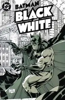Batman Black and White refers to the comic book limited series published by DC Comics featuring 8-page black and white Batman stories. Volumes 1, 4 and 5 of the series feature all-new stories (published in 1996, 2013–14, and 2020–21, respectively), while Vol. 2 and 3 contain stories from the back-up feature of the Batman: Gotham Knights comic book.