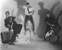 Batmobile was formed as a hobby in 1983. The band continues today with the founding lineup of Jeroen Haamers on vocals and guitar, Eric Haamers on bass, and Johnny Zuidhof on drums.[1] The band played only covers of early rockabilly and rock and roll by Elvis Presley, Gene Vincent, Chuck Berry, and Johnny Burnette.[2] The band is named after the Batmobile, the car driven by Batman. The name was suggested by Zuidhof who presented the idea for the name during band practice.[3] The band began playing various gigs at bars and one time, while playing a bar in a rural area, the band received a bad response from farmers who were at the bar. The band began playing covers extra fast, in a punk rock style to get everyone's attention. Bar staff and some patrons enjoyed the music and the band started playing psychobilly shows.[2] Their debut self-titled EP was released in 1985 on Rockhouse/Kix4U.[4]