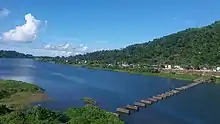 The river divides Bato into the east and west district. The Bato bridge, the longest in the Bicol region, spans the river from Baranggay Tilis to Baranggay Sipi. The old bridge is located in Baranggay Balongbong, and it was destroyed during the flooding of supertyphoon Rosing in 1995.