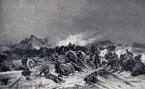French casualties amounted to around 8,000 soldiers killed and wounded and 100 taken prisoner.[1][2] The Prussians lost 817 soldiers and 37 officers killed.[8] The French impressionist painter Frédéric Bazille, serving as an enlisted man in the 3rd Zouaves, was killed in action at Beaune-la-Rolande whilst leading his unit in the first attack, his officer having been injured.[9] Alexander Siemens, the German electrical engineer who founded the Society of Telegraph Engineers and Electricians, also fought in the battle as a private in the Prussian army, received a wound and was awarded the Iron Cross for courage.[10]