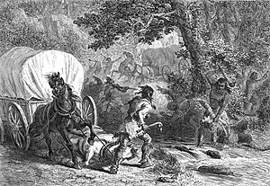 Apparently no flankers or vanguards were organized, and it was later reported that as the heavy ox carts slowed during the stream crossing, some of the militiamen had laid their weapons in the carts and were picking wild grapes along the trail. This apparent lack of caution may have been due to an overreliance on the scouting of Mosely's company, along with the English perception that Metacomet's forces preferred to attack unsuspecting border towns and garrison houses rather than large companies of English soldiers.[2][7]