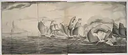 The First Battle of Chuenpi[2] (Chinese: 穿鼻之戰) was a naval engagement fought between British and Chinese ships at the entrance of the Humen strait (Bogue), Guangdong province, China, on 3 November 1839 during the First Opium War. The battle began when the British frigates HMS Hyacinth and HMS Volage opened fire on Chinese ships they perceived as being hostile.