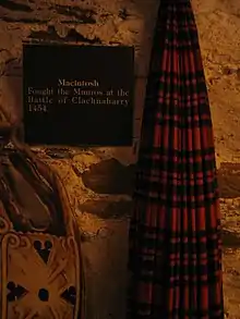 According to Alexander Mackintosh-Shaw, writing in 1880, the account of the feud given by John Anderson in his history of the Frasers (1825) is far from being in harmony with the account given in the Mackintosh of Kinrara manuscript from 1679.[5] Mackintosh-Shaw states that the Kinrara manuscript shows that it was not the chief of Clan Mackintosh who led the pursuit of the Munros but the chief's grandson who was also named Malcolm Mackintosh.[5] This Malcolm was the son of the chief's youngest son Gillichallum who had been killed at the Battle of Craig Cailloc against the Clan Cameron in 1441.[5] According to Mackintosh-Shaw the Kinrara manuscript suggests that the younger Malcolm's actions were taken without the chief's concurrence and that the chief was certainly not killed, nor present at the Battle of Clachnaharry.[5] John Munro having offered Malcolm Mackintosh 24 cows and a bull, Mackintosh would accept no less than half and Munro continued on his journey having given non.[5] Mackintosh sent his forces to attack John Munro, but according to the Kinrara manuscript Malcolm Mackintosh did not arrive until the battle was over and "went away sorrowful for what had come to pass through his hastiness".[5] According to Mackintosh-Shaw the loss was equal on both sides.[5] He goes on to state that the alleged retaliation by the Munros which included passage through Inverness which was a town always favourable to the Mackintoshes as well as through the most thickly populated part of Mackintosh country, is scarcely credible.[5]