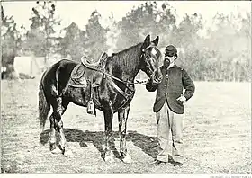 In the battle, the 2nd New Jersey lost three officers killed and two wounded, and 16 enlisted men killed and 69 wounded. The 7th Indiana lost two killed and 11 wounded while the 4th Missouri lost one officer wounded and captured and one enlisted man wounded.[15] The 4th Illinois lost two enlisted men wounded while the 11th Illinois lost one enlisted man killed and two officers and 13 men wounded.[14] One officer and 39 men from the 2nd New Jersey were left at Egypt Station under the care of the regiment's assistant surgeon because they were too badly hurt to be moved.[15] Nine enlisted men from the 11th Illinois in the same condition were also left behind.[16] At the time, it was believed that Confederate Brigadier General Samuel J. Gholson was mortally wounded,[13] but he lived until 1883, though he lost his left arm.[17] After the action, Grierson ordered his column to move west to Houston. The 2nd Wisconsin Cavalry Regiment was assigned to guard the over 500 captured Confederates.[13]