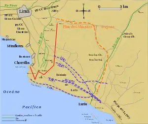 When the landing of Chilean troops led by Patricio Lynch in Pisco became known in Lima, Colonel Pedro José Sevilla was ordered with 250 cavalry soldiers to harass Lynch's march to the north, which did not yield the expected results.[2] The Chilean brigade arrived without fighting at the point where the rest of the landed army was waiting in Lurín and Curayaco, leaving the troops from Sevilla in the rear. Sevilla, who knew about the new landing in Lurín, thought that this wouldn't have occupied the interior, so he continued his journey relatively close to the coast and without outposts observing the road. He also sent a notice to Lima announcing his return and the itinerary he hoped to follow.
