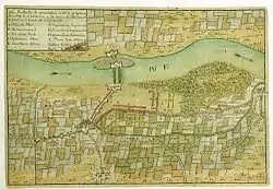 ![]() Hand-colored period map (oriented with West towards the top) depicting the battle order | |||||||