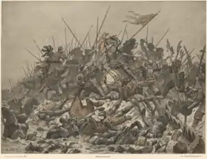 ![]() Combat between Danish and Dithmarschen troops at the Battle of Hemmingstedt by Rasmus Christiansen | |||||||