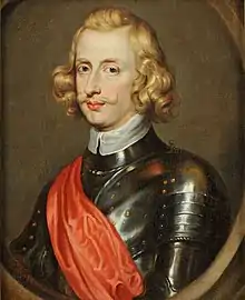 The cardinal-infante Ferdinand, informed about the Dutch move, left Brussels for Scherpenheuvel and ordered the bulk of the Spanish forces that faced the Dutch to assemble at Venlo. Cantelmo wes left with 3,000 men to defend Antwerp and the Waasland, while Ferdinand crossed the Meuse on 23 August with 12,000 soldiers.[42] Since Ferdinand intended to relieve Geldern but the States' Army outnumbered him, he request assistance to the Imperial troops under Guillaume de Lamboy, which Piccolomini had left in March to occupy the rebellious Free Imperial City of Aachen. On 25 August, Lamboy joined the Spanish army with 6,000 to 7,000 men. On their approach, Frederick Henry ordered the siege to be abandoned. The troops under Count Henry Casimir were caught between the Spanish relief force and the garrison of the town. 6 cannons and several hundred States' soldiers were captured.[43] The Dutch army withdrew to Nijmegen and then camped around Batenburg, Megen and Ravenstein, while the cardinal-infante led his troops to the Land van Cuijk, opposite to them.[44] By early October, after a month of inactivity, both armies took their winter quarters. Frederick Henry went to The Hague, and Ferdinand to Brussels. A final, minor operation took place when a force of three foot regiments and 19 cavalry companies with six cannon, under the Marquis of Lede, laid siege to Kerpen on 18 October. This town was a Brabantian exclave in the Electorate of Cologne which the Dutch had occupied a few years ago and from which they levied war contributions and obstructed the trade in the area between the Rhine and the Meuse. The 300-man States' garrison surrendered on 20 October.[45]