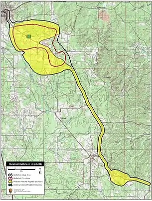 Map of Mansfield Battlefield core and study areas by the American Battlefield Protection Program