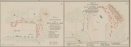 - ↑ Bearss, Edwin C. (1961). "The Battle of Pea Ridge". The Arkansas Historical Quarterly. 20 (1): 74–94. doi:10.2307/40025429. ISSN 0004-1823. JSTOR 40025429.