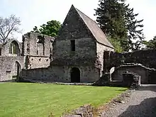 The battle site is now in East Lothian. The battle took place most probably in the cultivated ground 1⁄2 mi (800 m) south-east of Inveresk Church, just to the south of the main East Coast railway line. There are two vantage points for viewing the ground. Fa'side Castle above the village of Wallyford was just behind the English position, and with the aid of binoculars, a visitor can get a good view of the battle area though the Scottish position is now obscured by buildings. The best impression of their position is obtained from the golf course west of the River Esk and just off the B6415 road. The Scottish centre occupied ground a few yards west of the clubhouse. The Inveresk eminence, an important tactical feature at the time of the battle, is now built over, but from it, a visitor can get down to the Esk and walk for some way along the bank. The walk gives a further idea of a part of the Scottish position, but the town of Musselburgh now completely covers the left of the line.[47] The battlefield was added to the Inventory of Historic Battlefields in Scotland in 2011.[48]