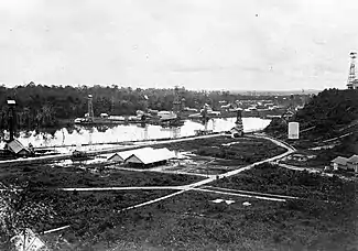 At the junction of Sanga Sanga River and Mahakam (Sanga Sanga Moeara), the Dutch also set up concrete casemates as part of a defensive position to delay an enemy landing near the mouth of the river. In addition, Monteiro also placed a strong guard at Dondang stream bridge in Tiram River, near where the oil pipeline was laid. To help prevent the drilling sites to be captured intact, the Dutch have prepared the destruction plan since early January 1942 and have evacuated the families of BPM staff at Sanga Sanga and Anggana to Samarinda.[10][11]