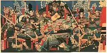 The Battle of Shizugatake (賤ヶ岳の戦い, Shizugatake no Tatakai) was a battle of the Sengoku period of Japan fought between Toyotomi Hideyoshi (then Hashiba Hideyoshi) and Shibata Katsuie in Shizugatake, Ōmi Province over a period of two days beginning on the 20th day of the fourth month of Tenshō 11 (equivalent to 10-11 June 1583 on the Gregorian calendar).[1] Katsuie supported Oda Nobutaka's claim as successor of Oda Nobunaga in a succession dispute within the Oda clan that benefitted Hideyoshi.