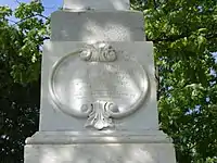 - ↑ Marker by monument, see picture in gallery