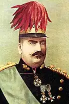 Amidst a string of humiliating Greek defeats, the successful ten-day defence of Velestino by Smolenskis stood out. Already during the battle, the press clamoured for promoting him to general and commander-in-chief, and contrasted his capable performance during the war with the general ineffectiveness of the military and political leadership.[lower-alpha 2] On 19 May he received a field promotion to major general and was placed in command of the 1st Infantry Division.[41] He was decorated with the Grand Commander of the Order of the Redeemer,[42] and was propelled to the status of a national hero. Already in 1897, the Municipality of Athens gave his name to a street, and he received honorary citizenships from several Greek cities. Medals and lithographs with his portrait were in widespread demand and prominently displayed for several years thereafter.[43] This popularity was quickly used to launch his political career: Smolenskis was twice elected Member of the Hellenic Parliament for the Attica and Boeotia Prefecture, and served twice as Minister for Military Affairs, in the 1897 Alexandros Zaimis cabinet, and in the 1903 Georgios Theotokis cabinet.[41]