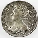 The Allies, therefore, did not capture as much silver for themselves as was often supposed. The Master of the Mint, Isaac Newton, stated in June 1703 that the total metal handed in to him by that date was 4504 lb 2 oz of silver (~2,043 kg), and 7 lb 8 oz and 13 dwt of gold (~3.4 kg), estimated at a value of just £14,000.[24] Coins subsequently struck from these metals bore the word VIGO below Anne's bust, and are rare and valuable.