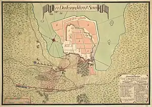 The Battle of Villmanstrand[lower-alpha 1] was fought during the Russo-Swedish War on 23 August 1741,[9] when Russian forces of 10,000 men[5] (13,000,[1] or 16,000–18,000,[6] according to Swedish estimates), under the command of General Peter von Lacy, assaulted Villmanstrand (Finnish: Lappeenranta).
