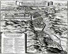 The Battle of Zusmarshausen was fought on 17 May 1648 between Bavarian-Imperial forces under von Holzappel and an allied Franco-Swedish army under the command of Carl Gustaf Wrangel and Turenne in the modern Augsburg district of Bavaria, Germany. The allied force emerged victorious, and the Imperial army was only rescued from annihilation by the stubborn rearguard fighting of Raimondo Montecuccoli and his cavalry.[5]