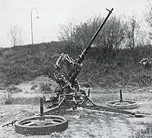 Unbeknownst to the Germans, three privately funded Swiss made Oerlikon 20 mm anti-aircraft cannons and four heavy anti-aircraft machine guns had arrived overnight at Kornwerderzand.[3] The next day, pilots who had previously flown unchallenged were fired upon. The Germans sent 62 planes to bomb the fort, dropping five waves of bombs. Four planes were shot down and crashed into the sea. The bombardment was followed by an hour of intense howitzer fire which had little effect on the heavily protected Dutch fortifications.