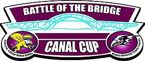 The Battle of the Bridge is the name of the all-sports rivalry between the Canisius Golden Griffins and the Niagara Purple Eagles.[1][2][3][4] Both schools are members of the Metro Atlantic Athletic Conference. The two teams compete every school year in 14 sports; men's baseball, men's and women's basketball, men's and women's cross country, men's golf, men's ice hockey, women's lacrosse, men's and women's soccer, women's softball, men's and women's swimming & diving, and women's volleyball. The overall winner of the annual series receives the Canal Cup trophy.[5] The two long time Western New York rivals created the trophy in 2007 to enhance the historic rivalry between the two schools.[6] The name of the series is a reference to the Grand Island Bridge, which each team crosses when traveling along I-190 to the other's campus.[7][8] The name of the trophy is a reference to the Erie Canal, which separates Erie County, where Canisius is located, and Niagara County, where Niagara is located.[6]