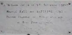 He was initially buried at Flushing Cemetery, in an unmarked grave.[6] There were brief ceremonies held in the Flushing Cemetery on 46th Ave and was participated in by representatives of the Senegalese government and of the African Boxing Union: a headstone was dedicated here by the International Veterans Boxing Association.[6] Cherif Djigo, first consul at the Senegalese Mission to the United Nations, stated "This stone represents to us a grand symbol that Battling Siki has not been forgotten".[6] His body was repatriated to Senegal in 1993.[7]
