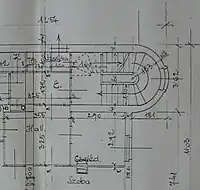 Round Staircase and other typical Bauhaus construction elements, Bauhaus proportions, on this original Floor plan from August 1933 in Budapest.
