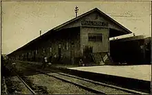 In 1904, the Companhia Estrada de Ferro Noroeste do Brasil was created. Composed of Belgian, French, and Brazilian financing, its objective was to link Bauru to the city of Cuiabá. Work on the railroad began in November 1904,[3] starting from the Bauru station of the Sorocabana Railroad, completed in July 1905.[4][5] The Bauru station of the Noroeste was erected in the vicinity of the Sorocabana station. Consisting of a wooden building, it was inaugurated together with the railroad on September 27, 1906.[6][7] Even so, the Noroeste operation still used the Sorocabana station as a boarding point for some time. The first Noroeste station became smaller in the face of growing passenger boarding. With the arrival of Companhia Paulista tracks in 1910, Bauru was consolidated as an important São Paulo railroad junction.[8]