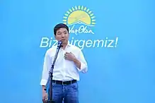 On 28 June 2019, Baibek was reappointed again as the First Deputy Chairman. He served the post until 2 February 2022 when he stepped down shortly after President Kassym-Jomart Tokayev became the new party leader.[3] In his Facebook page, Baibek cited the reason for his resignation was due to the Nur Otan requiring "new tasks that require fresh approaches and views."[4] In his statement, he gave remarks about his work in the party which were contributing to strengthening Kazakhstan's independence, thanking former President and party leader Nazarbayev and incumbent President Tokayev for trust and support, as well as the party's apparatus staff and members.[4] Following Baibek's dismissal, the post of the First Deputy Chairman was abolished and replaced by the executive secretary for the party, who became Ashat Oralov.[5]