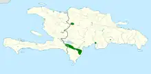 The bay-breasted cuckoo historically ranged widely in both the Dominican Republic and Haiti. As of 2020, it had possibly been extirpated from mainland Haiti and definitely from Gonâve Island, and was known to nest in only two areas of the Dominican Republic. One is on the northern slope of Sierra de Bahoruco in Independencia Province where it is present in two protected areas. The other is in Nalga de Maco National Park on the lower southern slope of the Cordillera Central. Local reports, sight records, and photographs from other sites since 2005 hint that the species is present outside those two areas, and "it is likely that small breeding populations remain at these sites."[1]